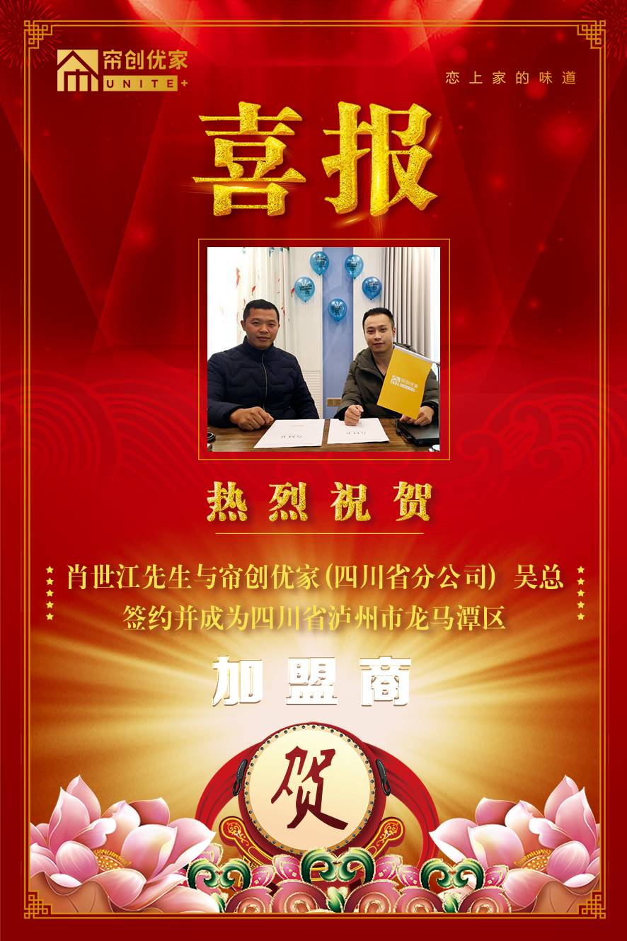 恭喜【肖世江】先生与【四川省分公司】签约,成为四川省泸州市龙马潭区的加盟商。