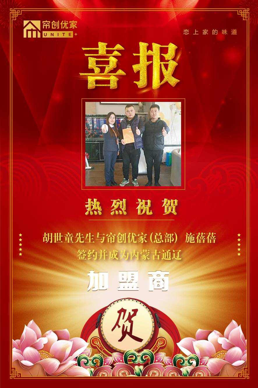 恭喜【胡世童】先生与香蕉视频污版在线观看优家总部业务部经理施蓓蓓友好协商,最终达成合作共识并签约成功,成为了内蒙古通辽市的加盟商。